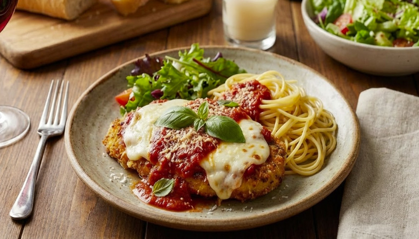 This video shows a simple talk about food at a meal. They talk about chicken, cheese, and dessert.